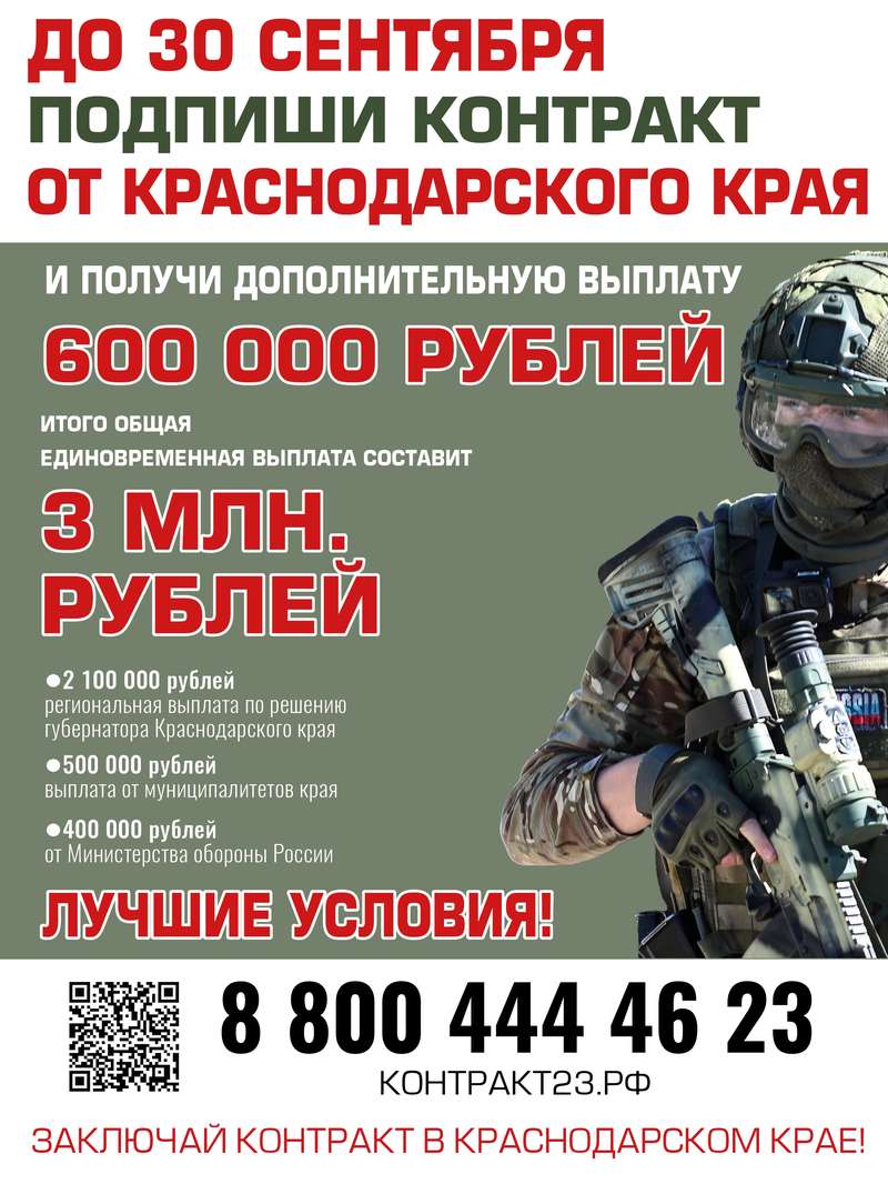 ‼️‼️До 30 сентября увеличена единовременная выплата подписавшим контракт до 3 МЛН РУБЛЕЙ.